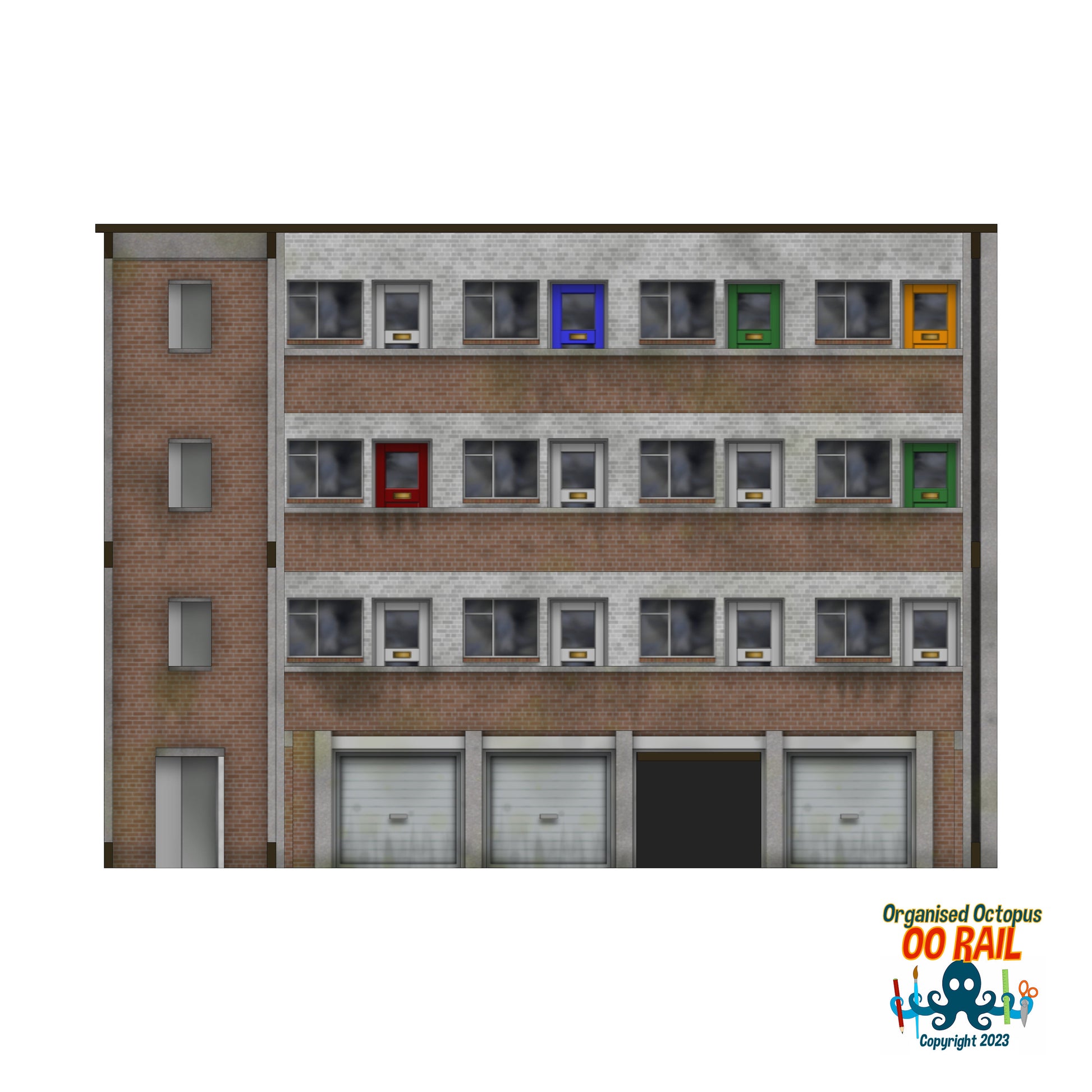 OO Scale 1950s Block of Flats (Low Relief) with Ground Floor Garage Option
