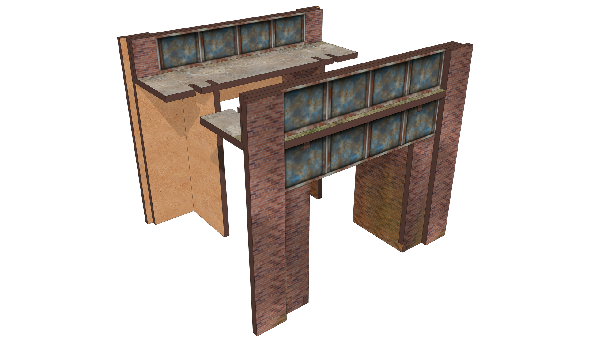 This A5 kit makes a single steel bridge. It is design so it can be split into 2 widen the road deck or make a low relief twin bridge. The portal is wide enough for a single track.