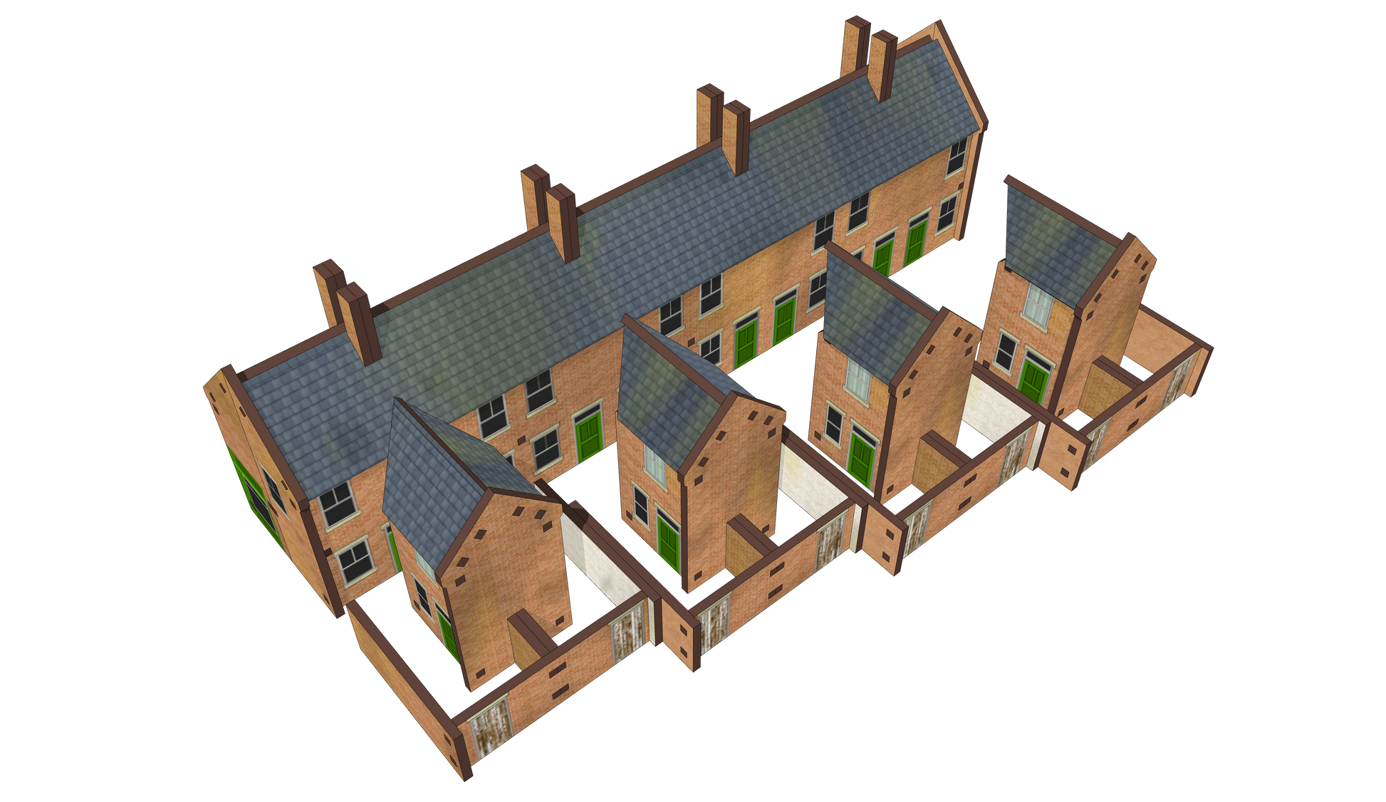 This A5 kit makes 2 terrace house back extensions with ward walls.